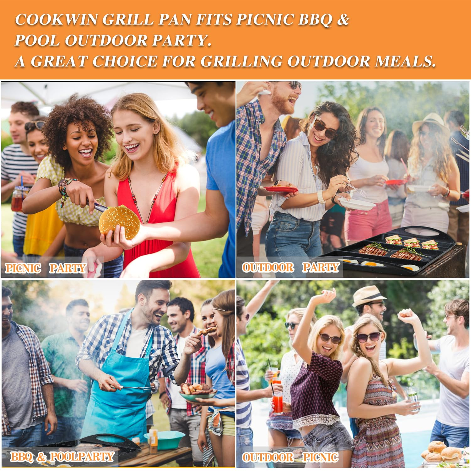 2.NON-STICK&NON-RUST COATING:The surface of our griddle has black colored granite ceramic coated easy release baking surface.Its rich cream flecks make this bakeware both fashion and high function, making cooking and cleaning easier.Your food won't stick,allowing you to create Insta-worthy meals every time.Food will cook up crisp outside,and tender inside.You'll make perfect pancakes,grilled cheese sandwiches,etc. Food slides right off and onto your plate and clean-up is quick and easy.