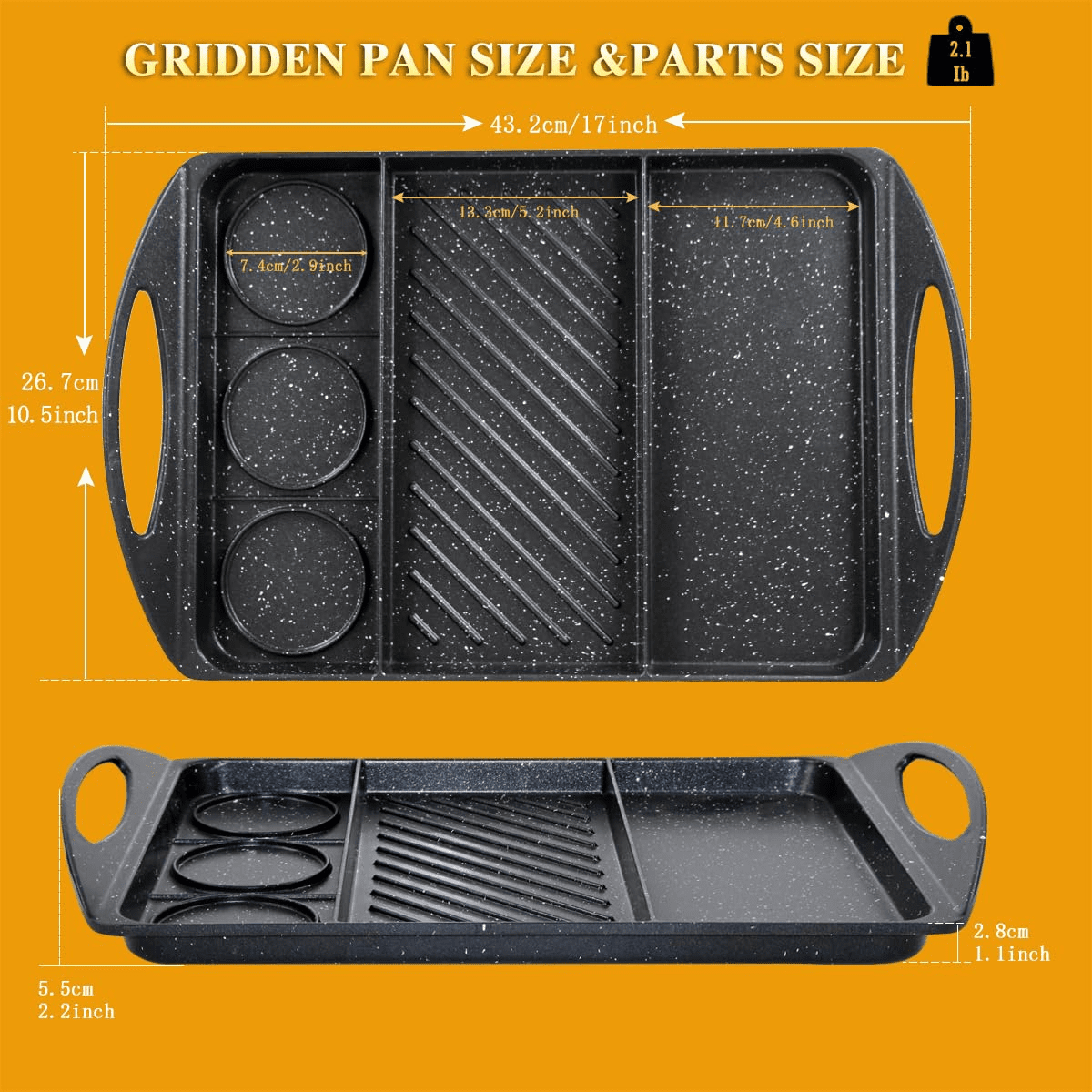 Home > 3 in 1 Flat Top Grill Griddle,Griddle Pan for Stove Top Double Burner Grill,Aluminum Pancake Griddle,Non-Stick Top Griddle Grill Compatible with All S