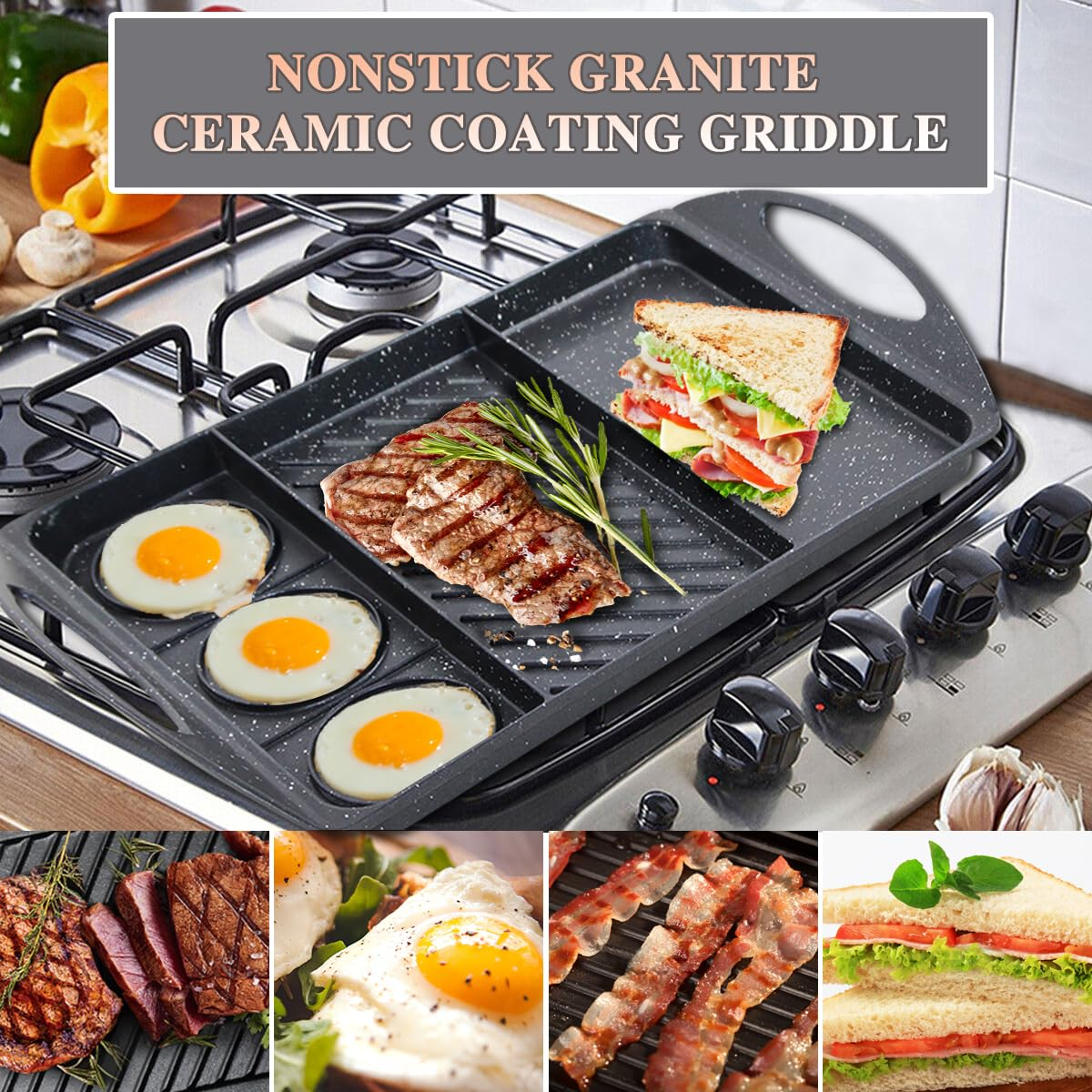 3 in 1 Flat Top Grill Griddle,Griddle Pan for Stove Top Double Burner Grill,Aluminum Pancake Griddle,Non-Stick Top Griddle Grill Compatible with All S