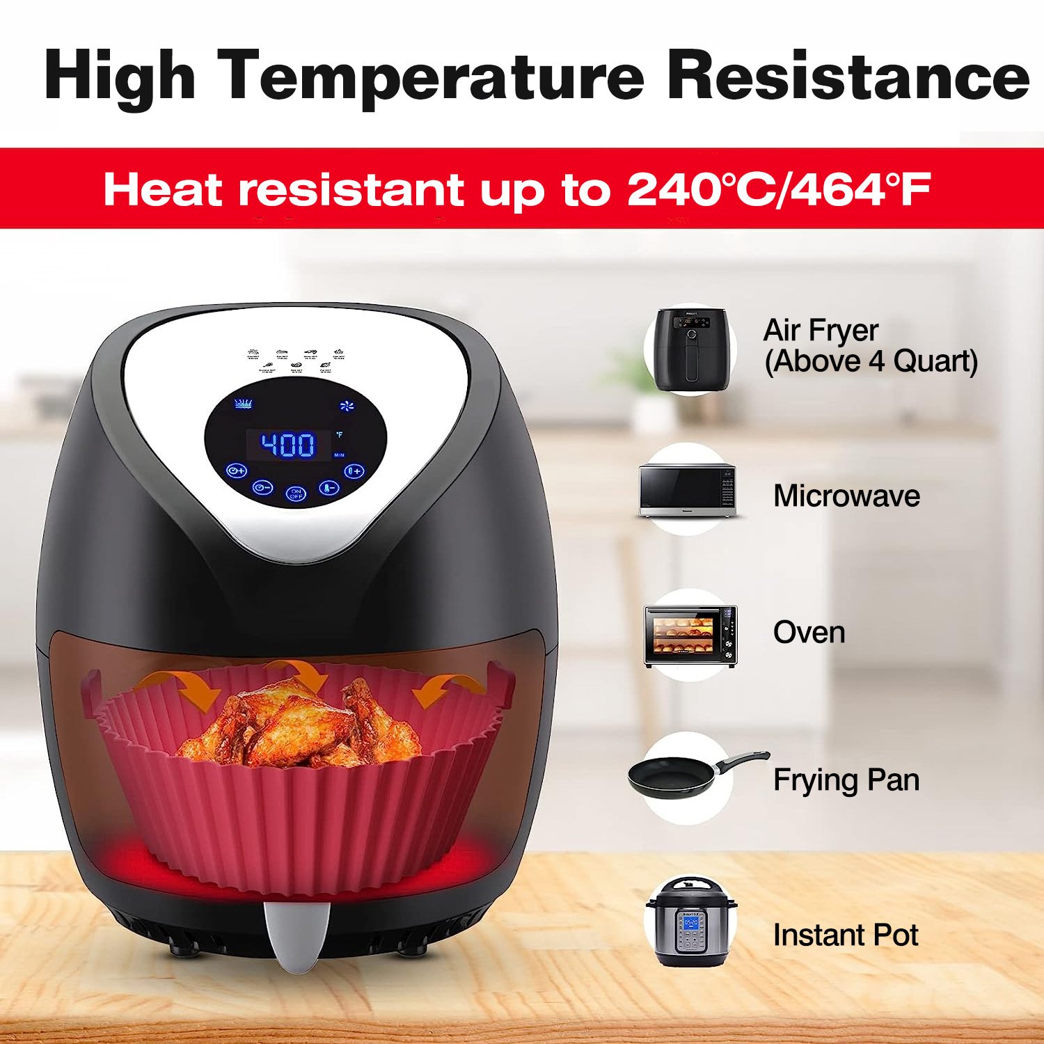 *Premium Silicone Materials*:Great replacement for disposable parchment liners,our reusable air fryer silicone pot is made of food grade silicone,leak-proof,non-stick and non-toxic.