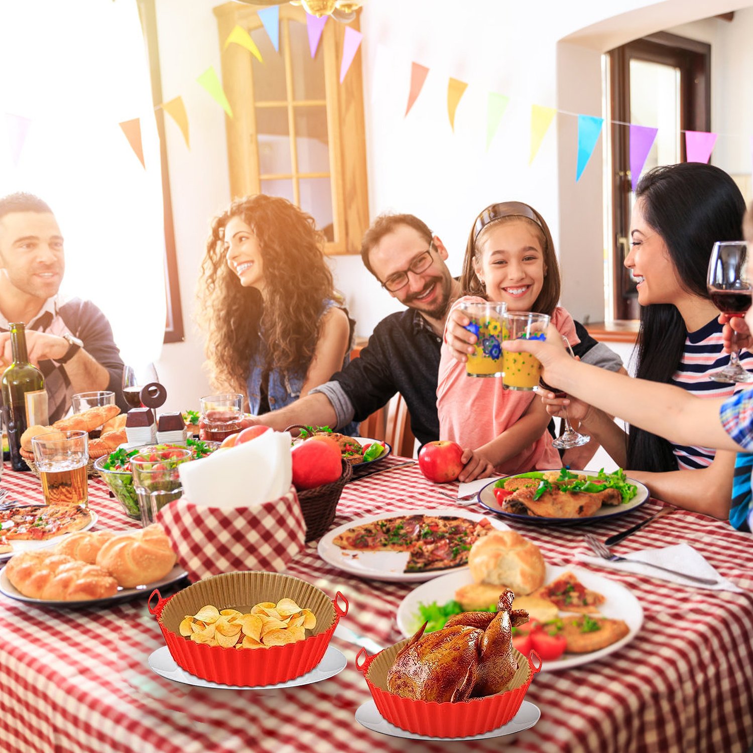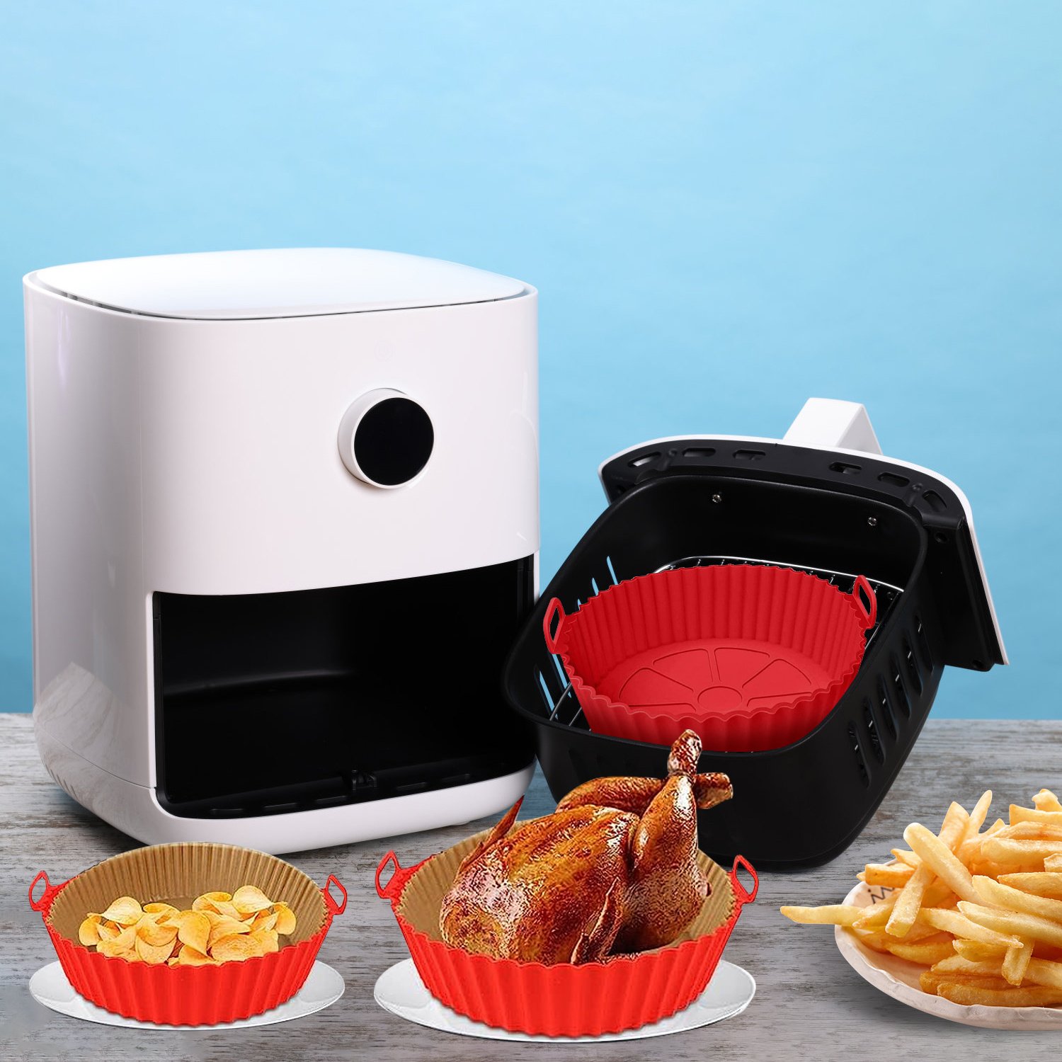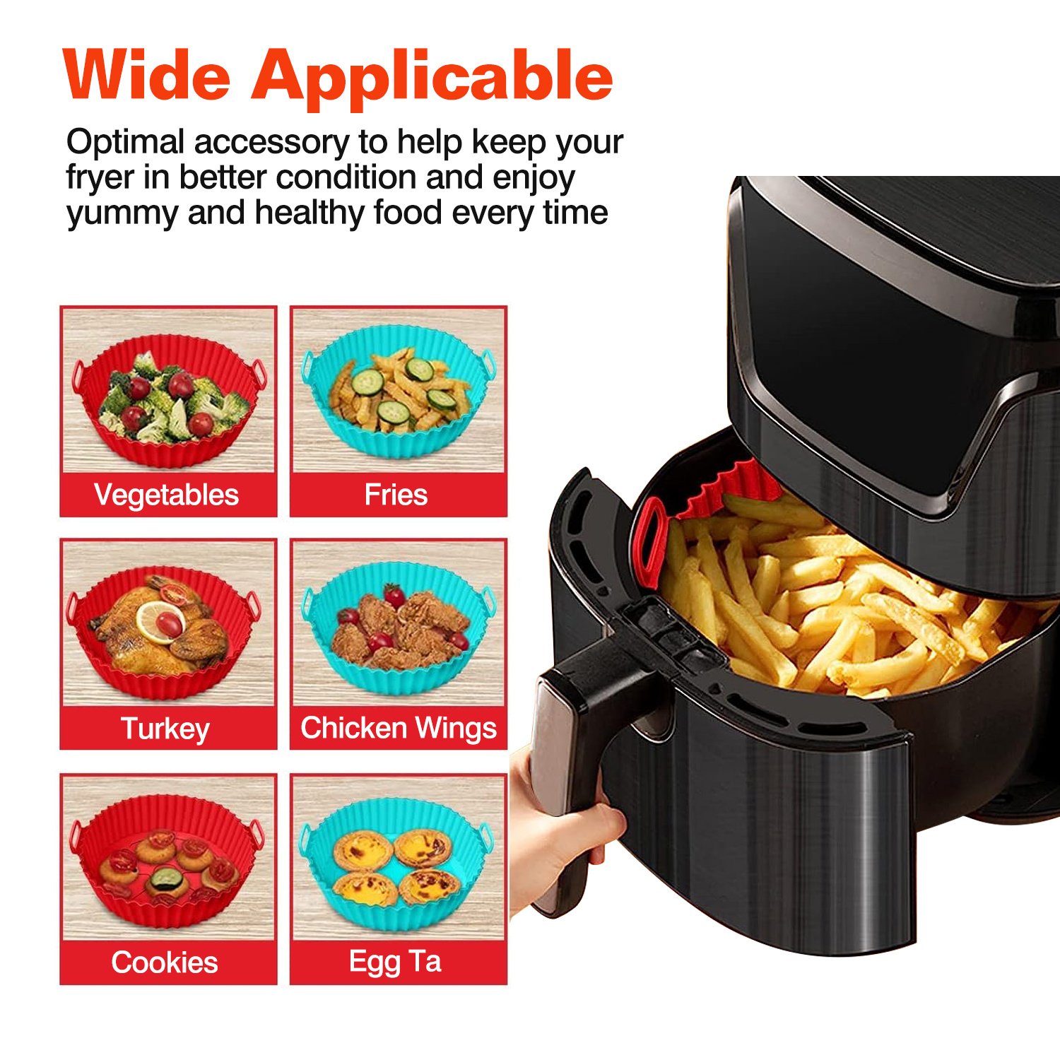 *Wide Applications*:Our package includes 3 round silicone air fryer liners. Reusable silicone bowls for air fryers above 4L and other gourmet cooking equipment,such as microwave ovens,ovens,frying pans,steamers,etc.. perfect for preparing healthy meals at home.