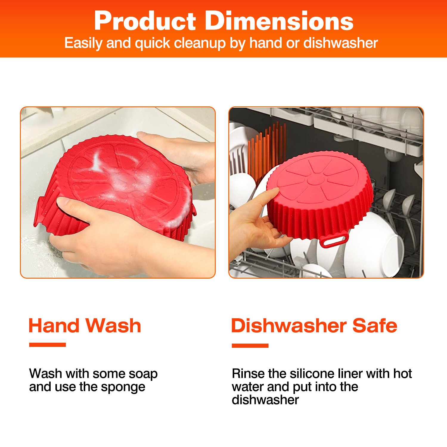 *Easy Cleanup*:It's recommended that flip it over and wash it with warm water while handwashing. Dishwasher safe will save you much time. Reuseable air fryer silicone liner is a better choice to make your life healthier and more eco-friendly!