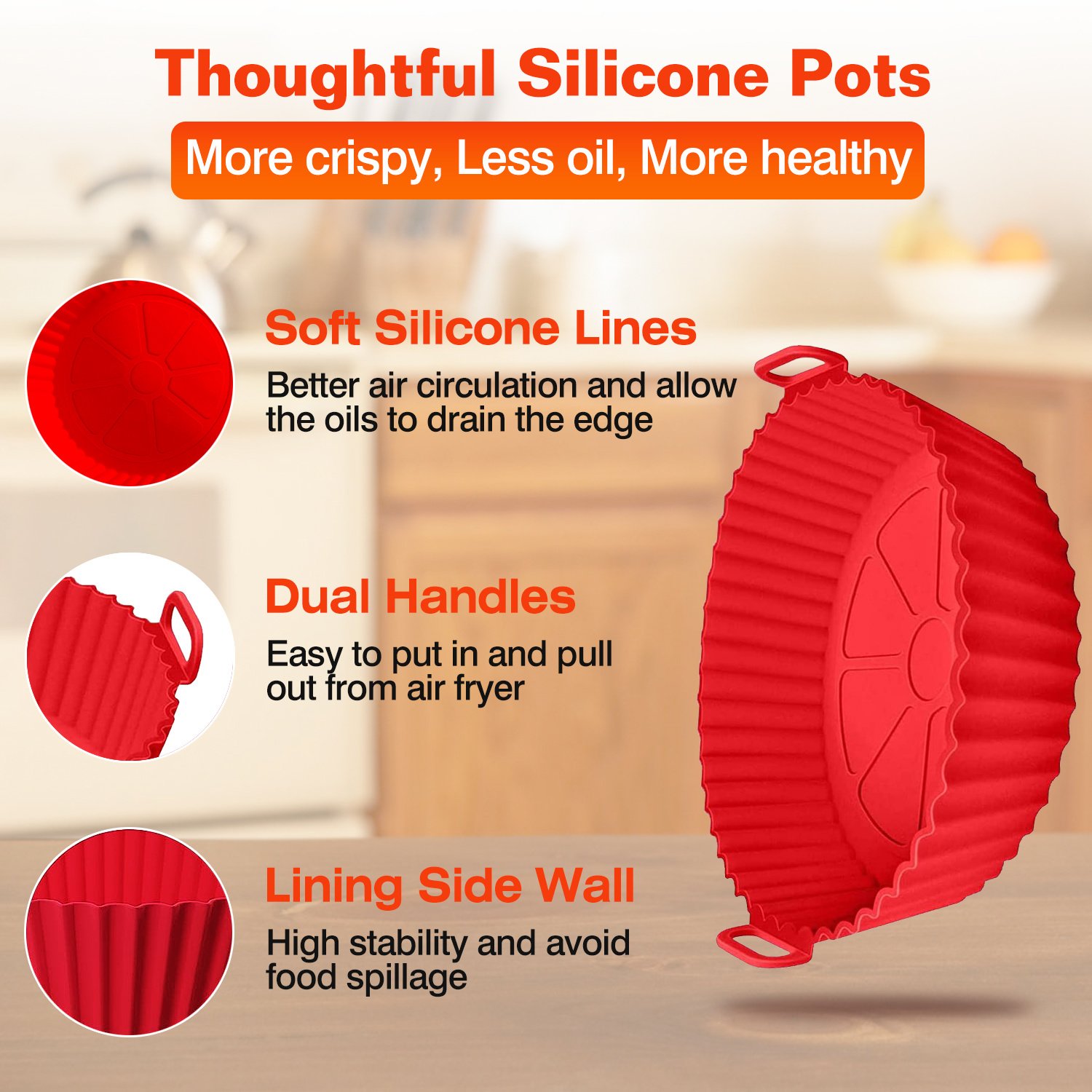 *Heat Resistant Up To 464°F*:Premium silicone materials and dual side handles per pot,easily fetch the pot from air fryer. 464°F Heat resistant is safe for air fryers,ovens,microwaves and refrigerators.