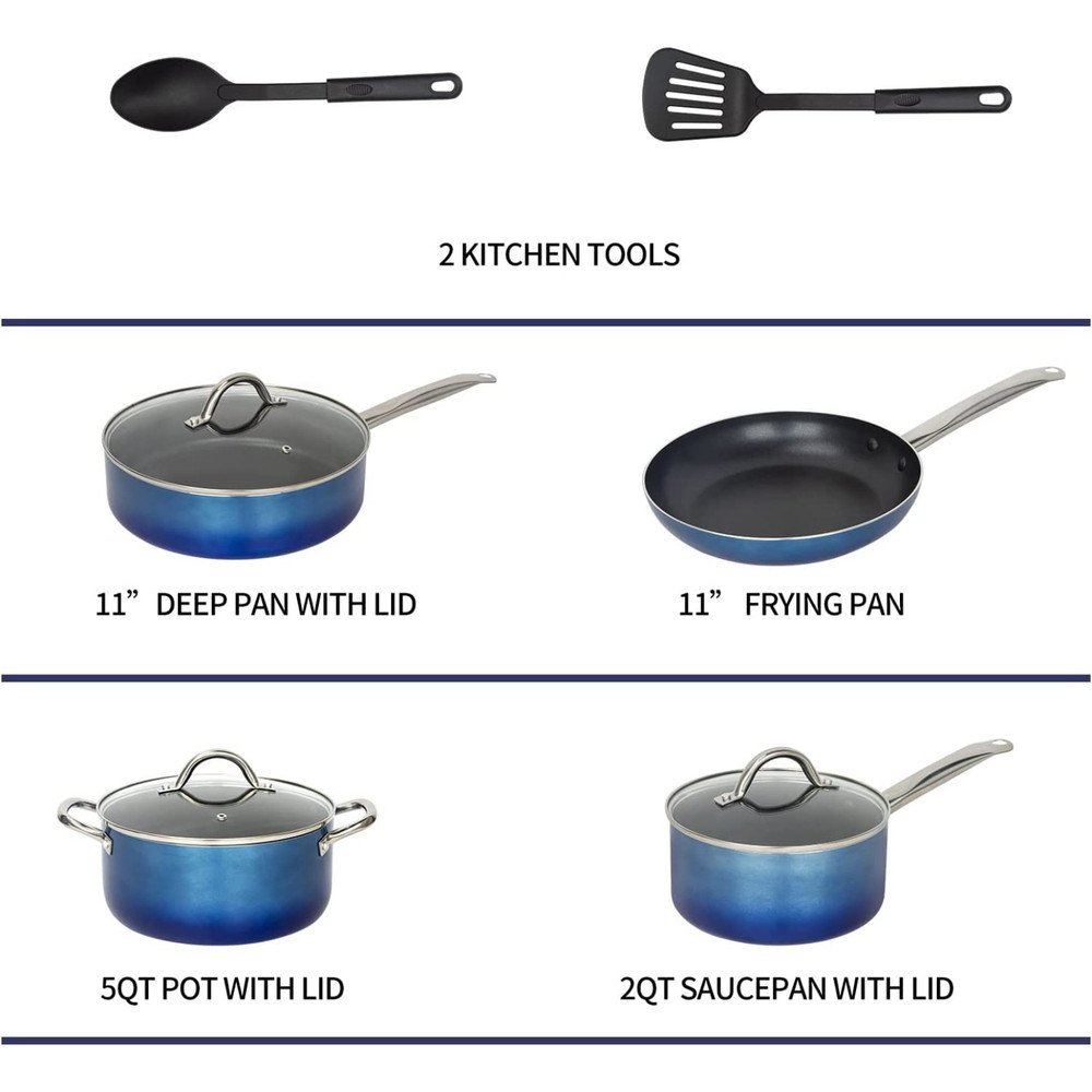 5.Versatile Pots and Pan Set. Oven and broiler safe up to 500°F, including the lids. The cooking set provides a great foundation for any cooker, like oven, induction, gas and so on. Dishwasher Safe.