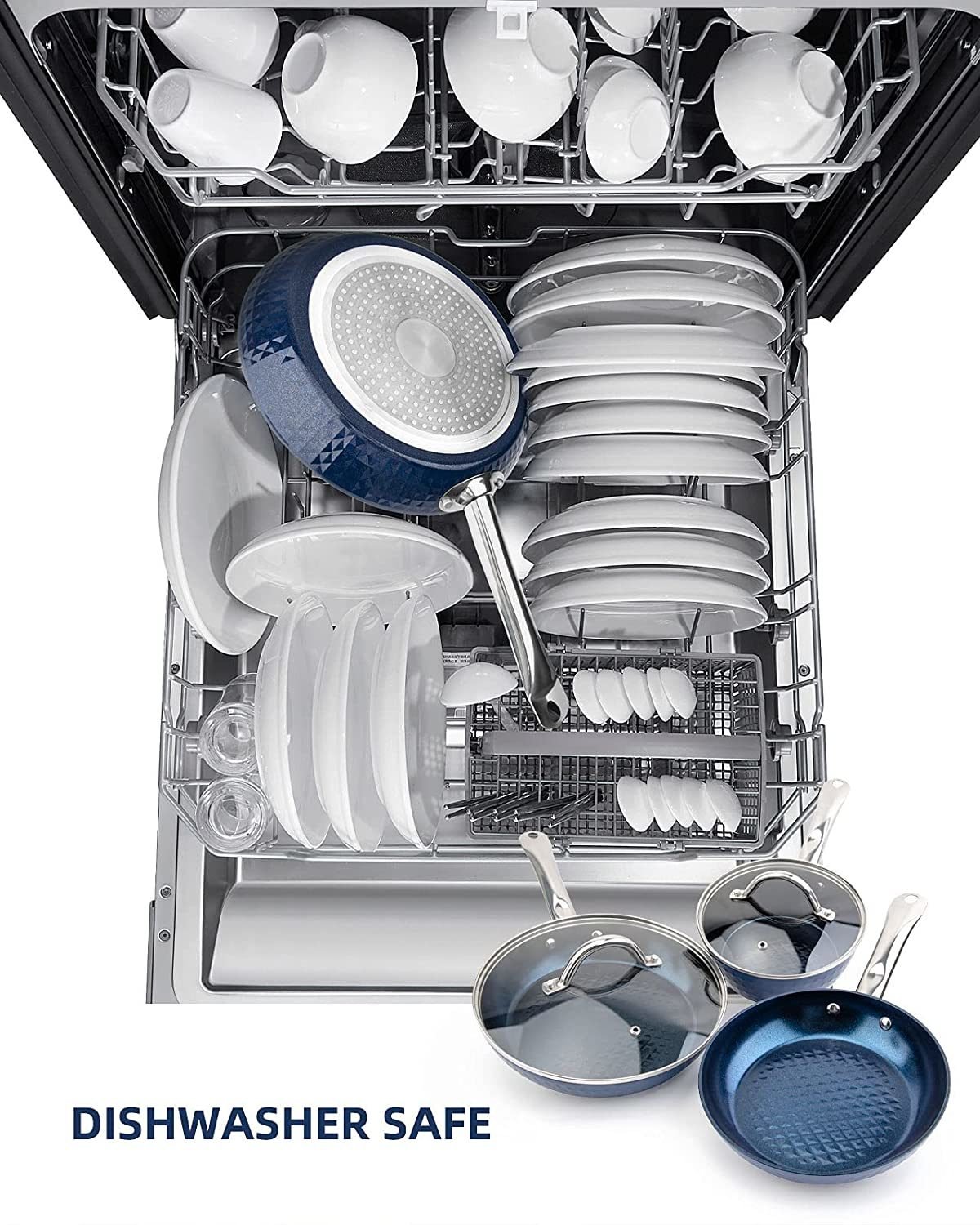 4.Nonstick Design-Easy To Clean: The interior is coated with high-performance non-stick ceramic, less oily smoke, more safe, use less oil to make delicious food, more in line with the concept of healthy eating. After use, just simply clean, save time, dishwasher safety, easy to use and clean.