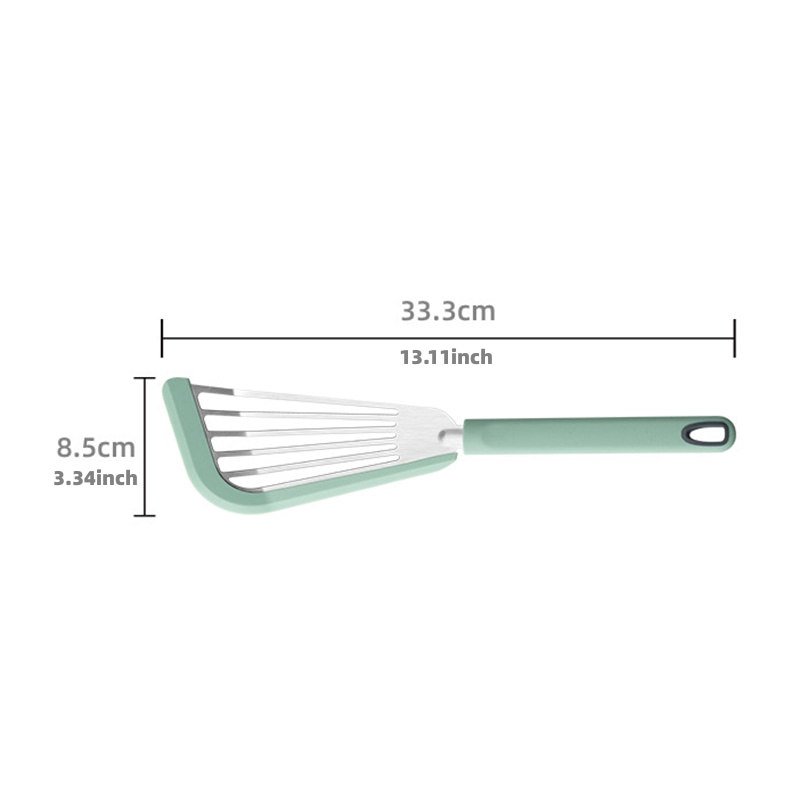 3.1MM THIN BLADE: The slotted turner has wide thin edge(0.03inch thickness) but flexible and durable.Lightweight but sturdy.Perfect for flipping delicate foods like omelettes and fish filets,also enough stronger to lift heavier foods with ease like steak.This thin spatula silicone is easy to filter the oil out when frying foods,making it a good kitchen cooking tool for those who like to cook fish or pancakes.