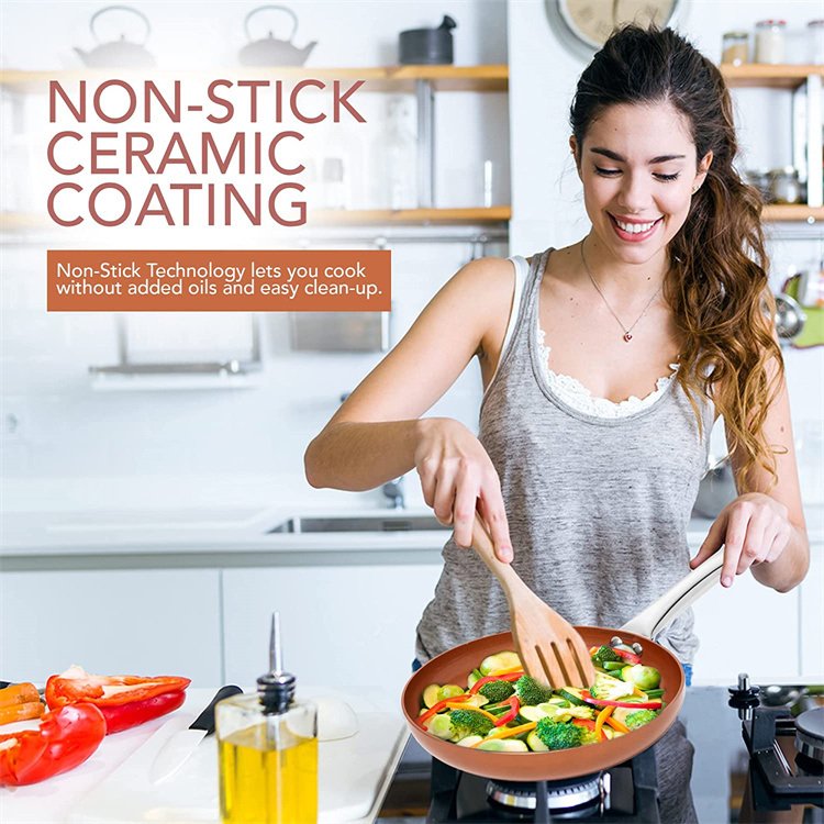 Frying Pan Nonstick 20 24 28cm Frying Pan with Ceramic Titanium Coating Round Copper Egg Pan Kitchen Cookware