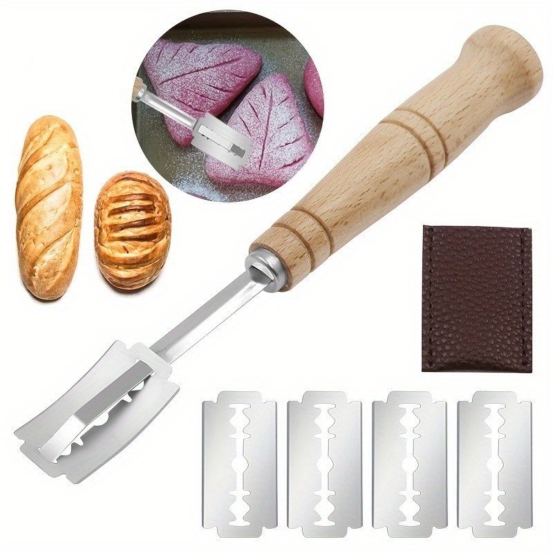 1pc European Baguette Cutter Wooden Handle Curved Scoring Knife Stainless Steel Bread Trimming Knife Dough Flat Dividing Knife Kitchen Tools